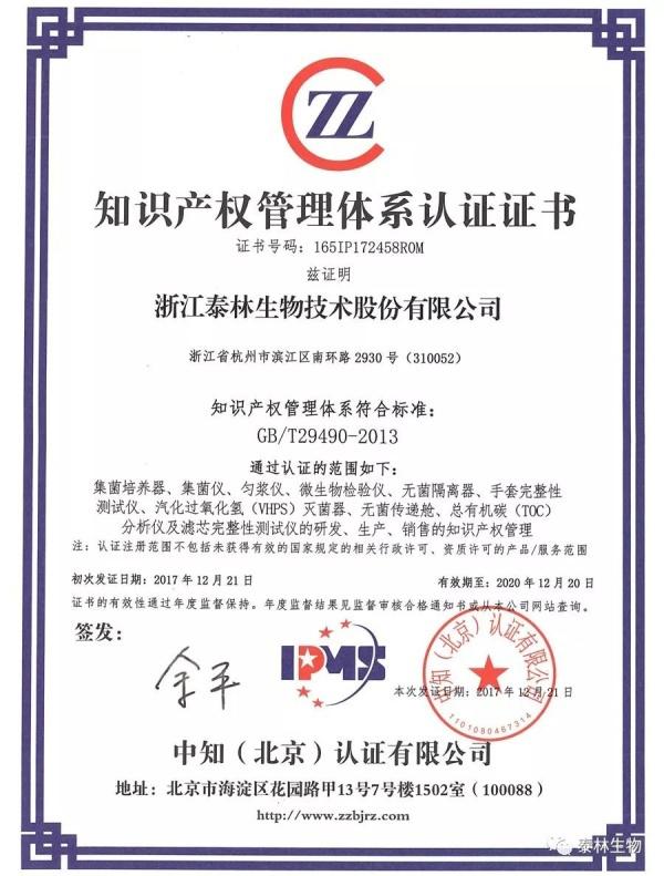 去年6月,泰林生物召開(kāi)知識(shí)產(chǎn)權(quán)貫標(biāo)啟動(dòng)大會(huì),經(jīng)過(guò)近半年的知識(shí)產(chǎn)權(quán)管理體系建設(shè)運(yùn)行,2017年12月21日,泰林生物通過(guò)知識(shí)產(chǎn)權(quán)管理體系評(píng)審,正式獲得知識(shí)產(chǎn)權(quán)管理體系認(rèn)證證書(shū)。