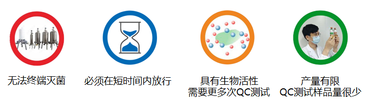 與傳統(tǒng)藥物相比前沿治療藥物(ATMP)在研發(fā)及生產(chǎn)過程中的產(chǎn)品質量控制面臨諸多挑戰(zhàn),例如無法終端滅菌、傳統(tǒng)藥典中無菌檢查方法檢測周期長、具有生物活性需要多次QC測試、產(chǎn)量有限QC測試樣品量少等。