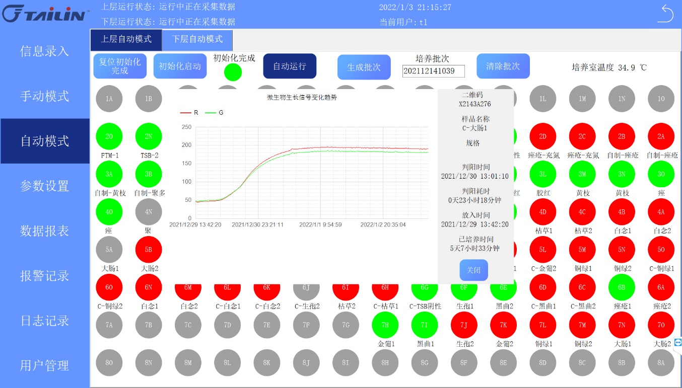 報告中指出,十三五國家重大科技專項成果全自動無菌培養(yǎng)系統(tǒng)AST-300和AST-80是專用于藥品快速無菌檢查的智能化儀器,由恒溫培養(yǎng)箱體,自動化檢測單元、培養(yǎng)容器、微生物生長信號感應器等組成。其原理是基于微生物呼吸作用產(chǎn)生的CO?,引起培養(yǎng)容器上感應器顏色的改變,通過設備的視覺相機連續(xù)掃碼感應器圖像及對應二維碼,由計算機系統(tǒng)進行視覺分析并轉換為生長信號,根據(jù)變化趨勢分析及專用的算法來判斷無菌檢查結果。