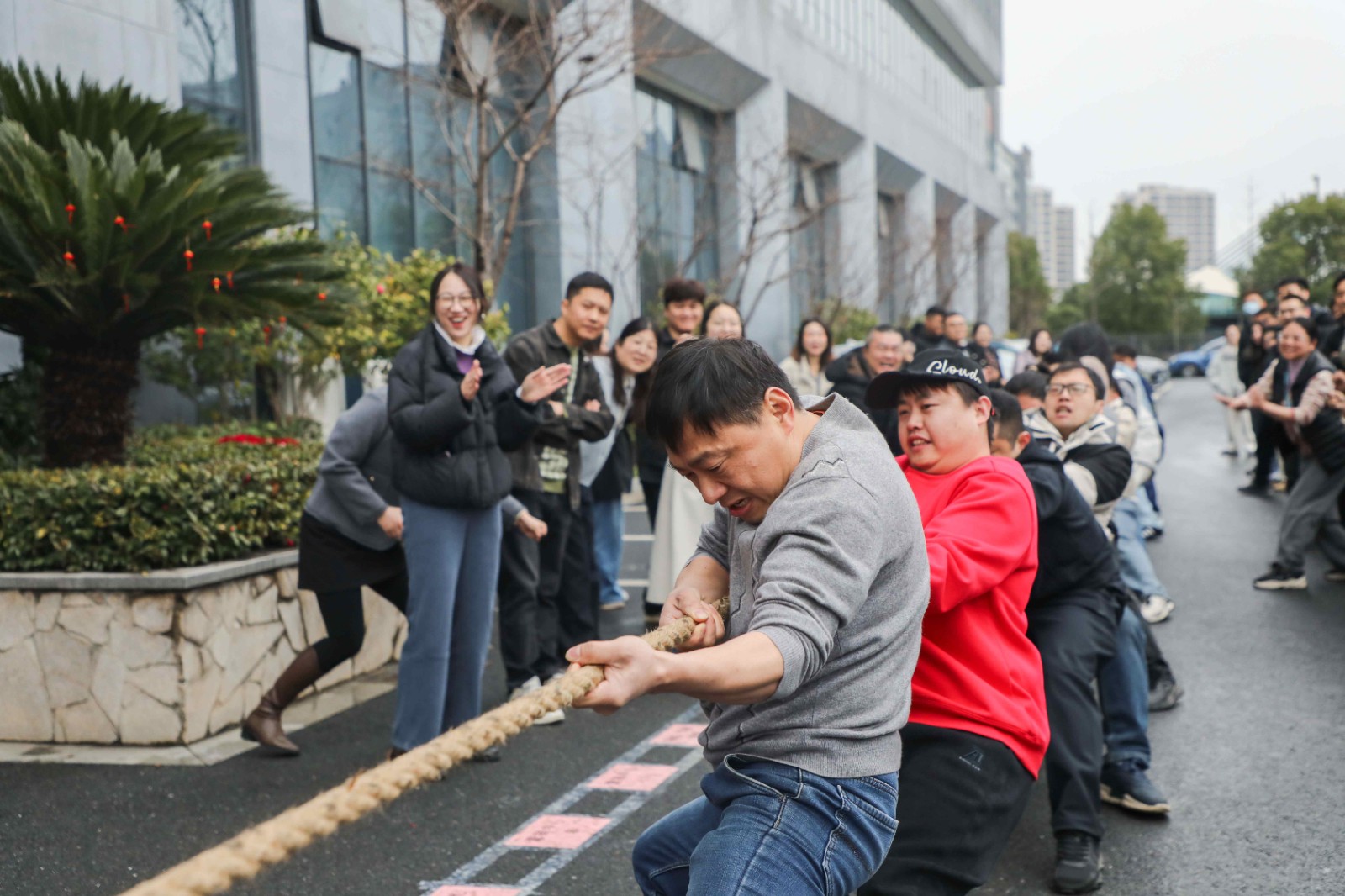 哨響,勁發!作為延續多年的開工傳統,拔河比賽瞬間點燃全場熱情。賽場之上,泰林人穩扎馬步、全力傾身,緊握麻繩凝聚全身力量;賽場之外,加油吶喊聲此起彼伏,響徹園區。麻繩之上紅綢的每一次擺動,都緊緊牽動著所有人的心。